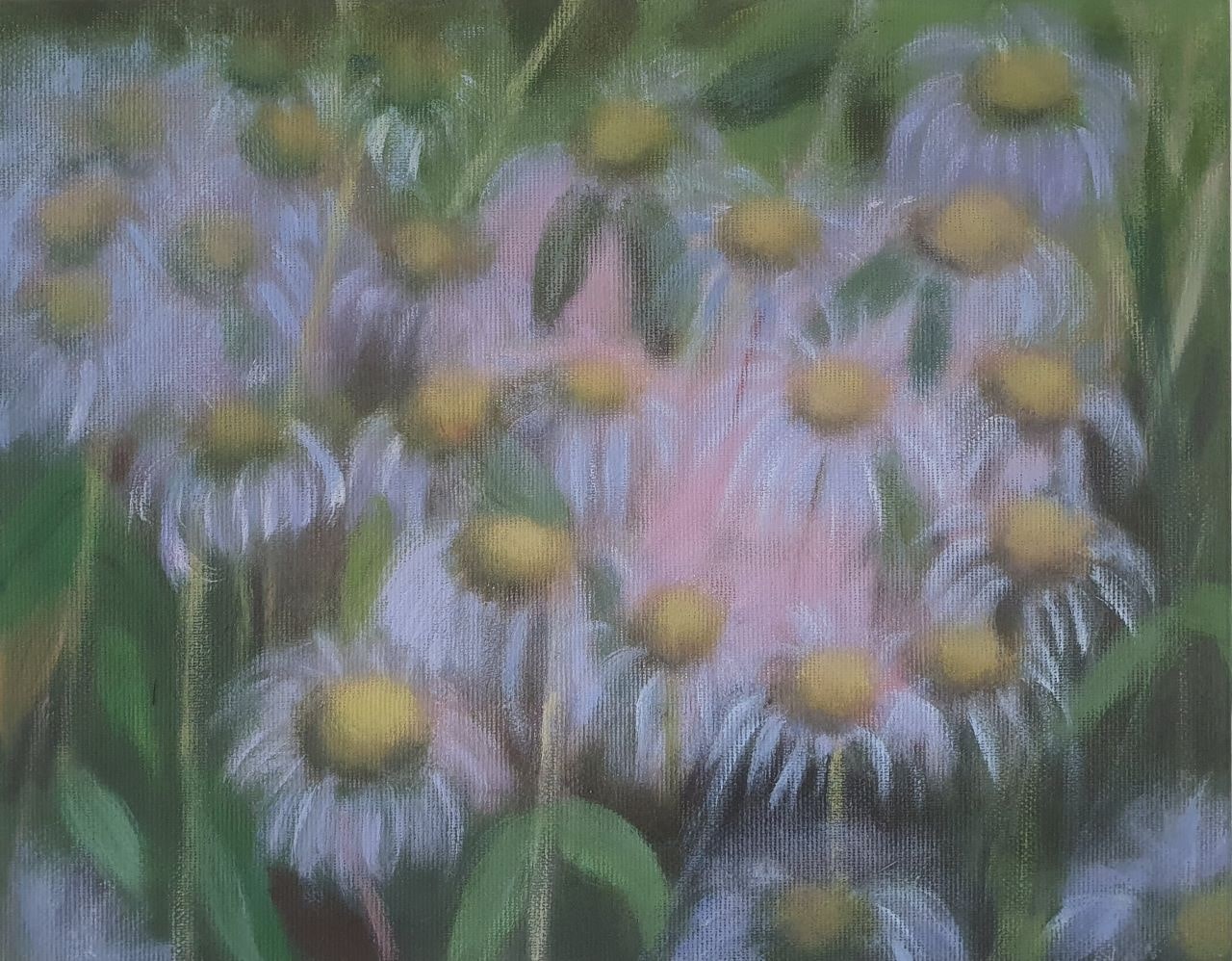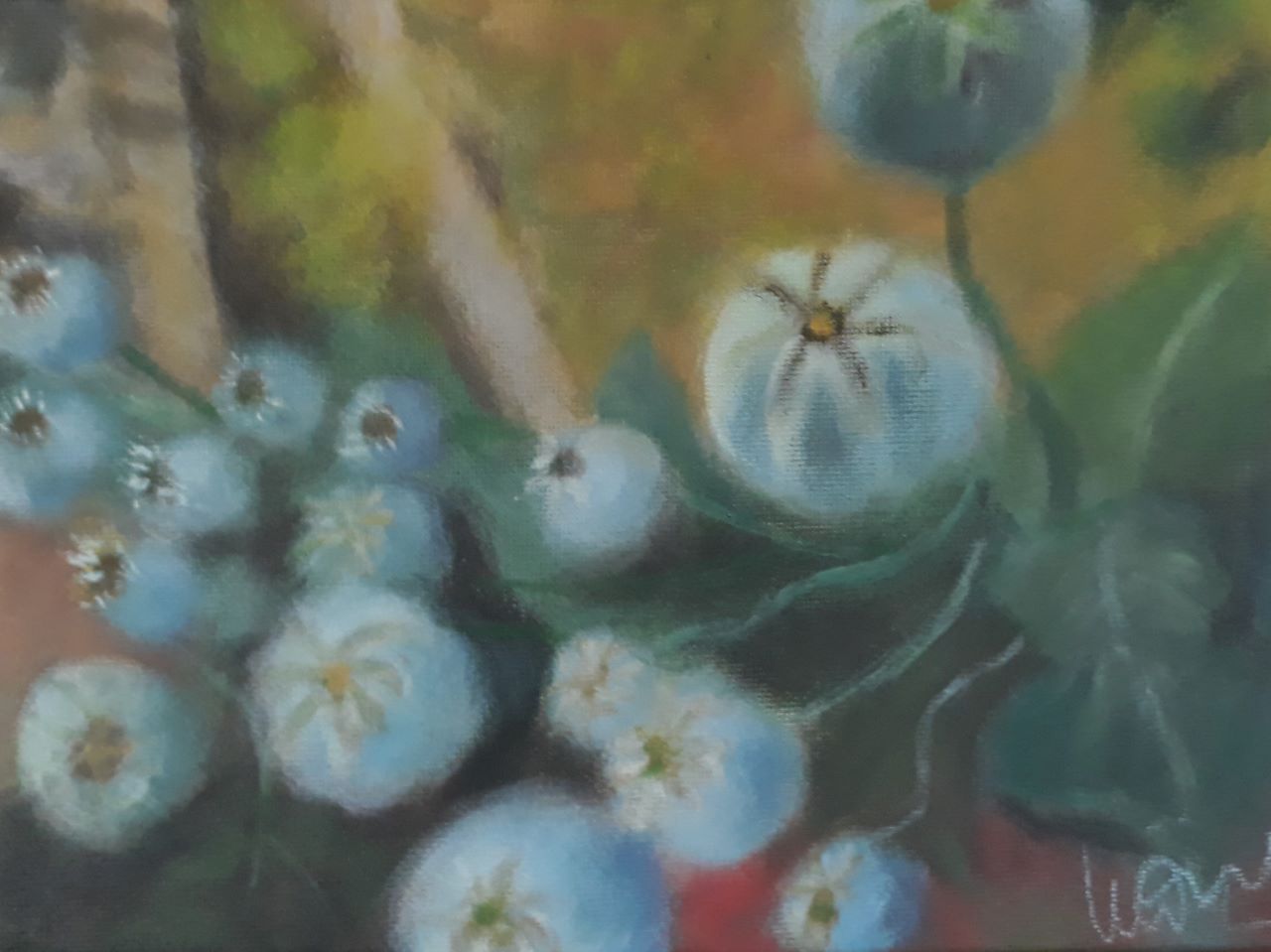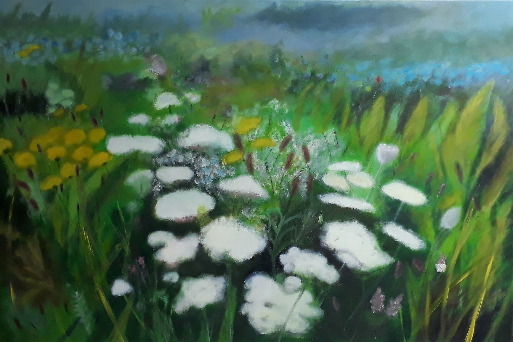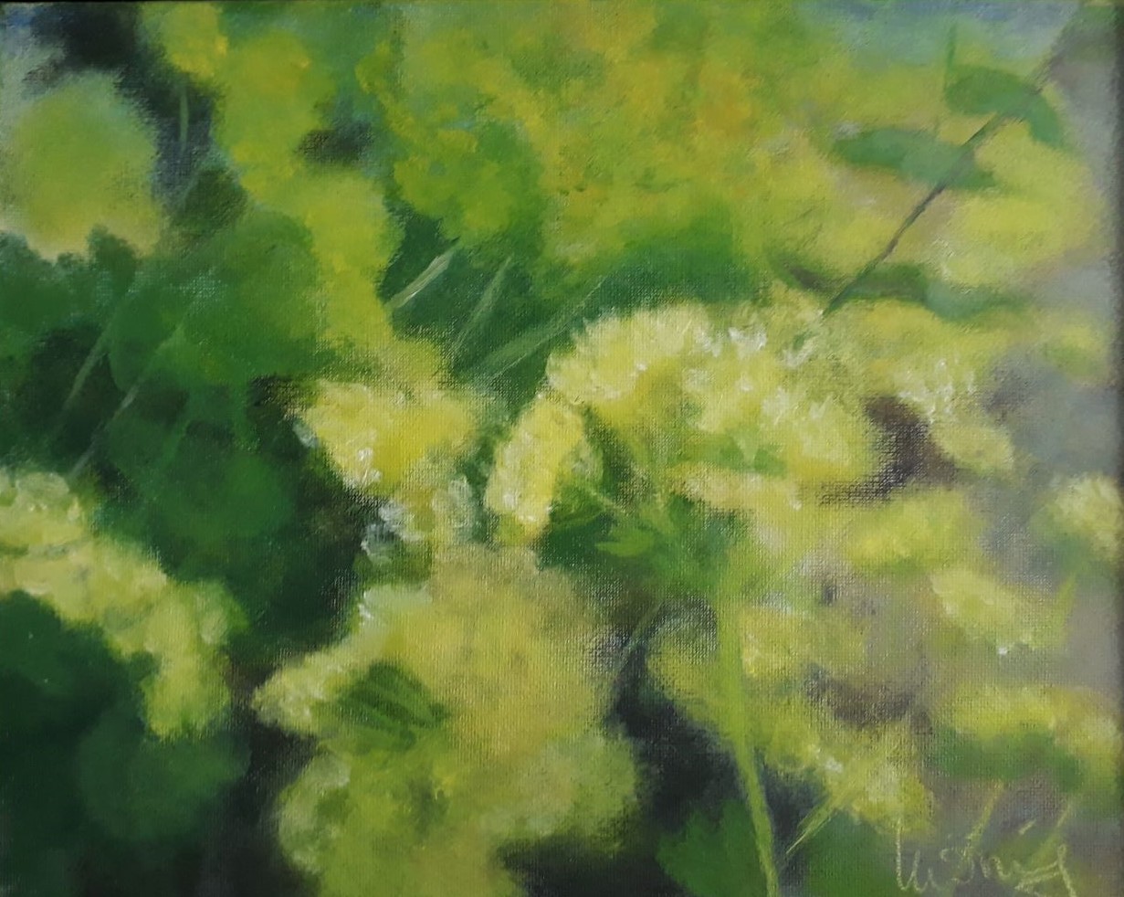 Frühling Acryl auf Leinwand, 24 x 18Glockenspiel Eitempera auf Leinwand, 24 x 28Wildes Sommerweiß Acryl auf Leinwand, 120 x 80Frauenmantel Acryl auf Leinwand, 30 x 24, verk.